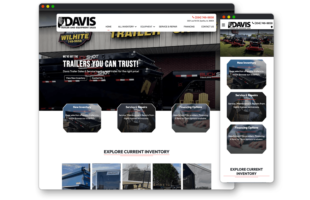 Get a custom-designed website that is responsive, dynamic and perfectly suited for trailer dealerships! Plus, all your inventory is instantly synced with your DMS.