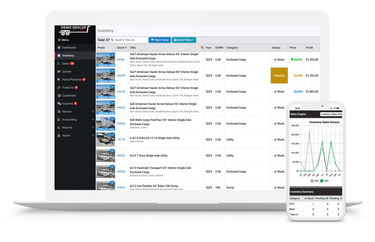 When it comes to managing your inventory, most DMS systems are too bloated and cumbersome for the trailer industry. Trailer Ops has created an inventory management system that is lightning fast, clean, simple to use, and specifically catered for your trailer dealership!- Inventory simplified for trailer industry.
